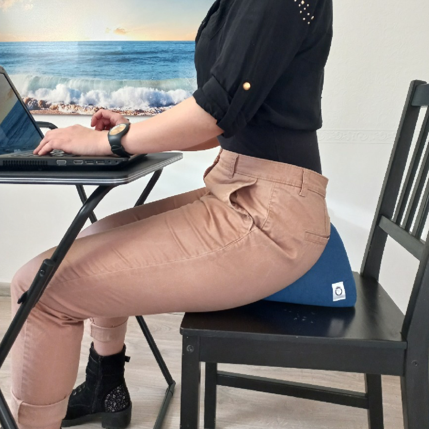 Poduszka jest skierowana do kobiet, które spędzają czas w pozycji siedzącej, szczególnie na twardych krzesłach bez oparcia. Można się podpierać o oparcie krzesła, ale pełną funkcjonalność poduszka zachowa w pozycji siedzącej bez oparcia.