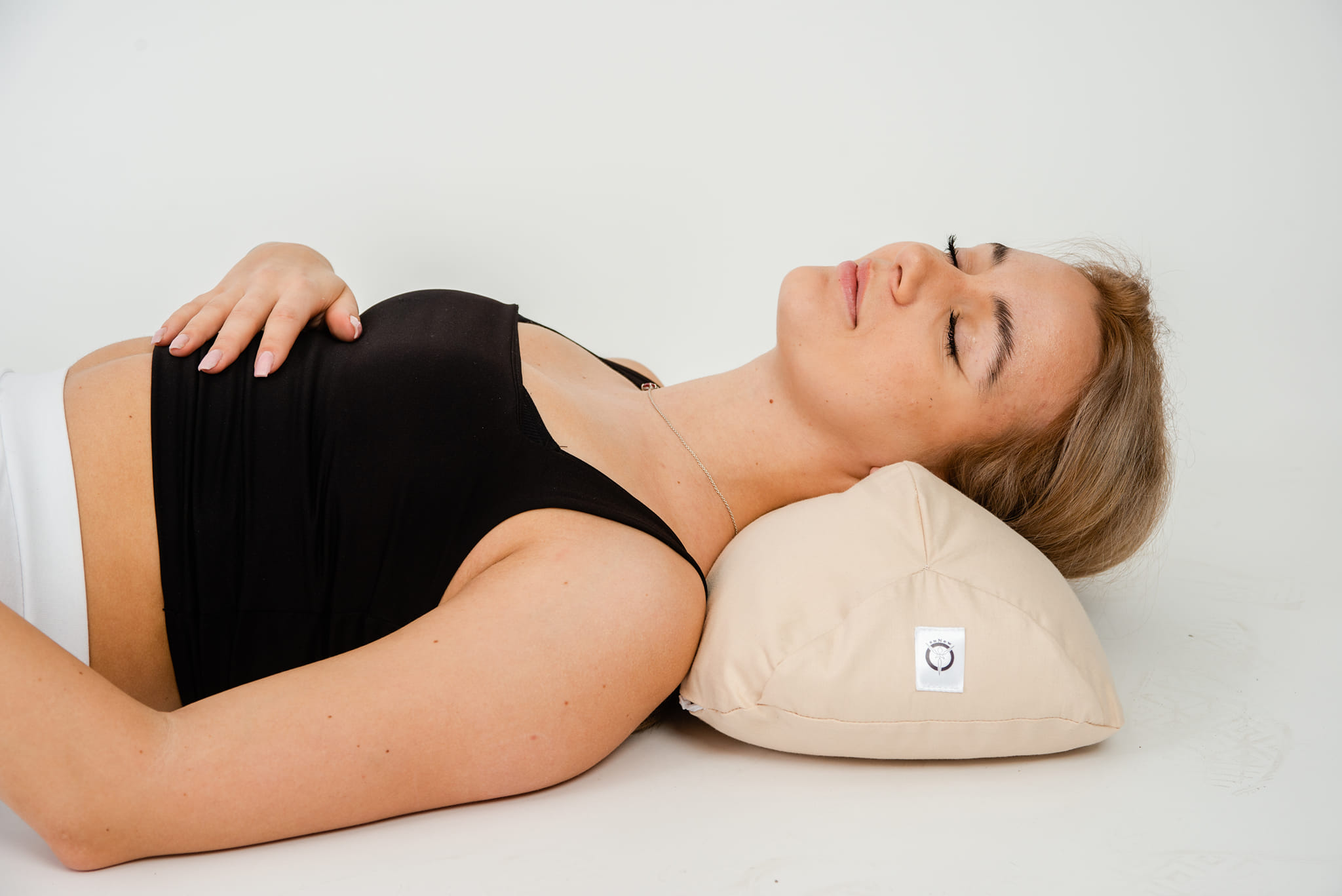 – Dodatkowo boczne wypustki poduszki podpierają kości ciemieniowe czaszki, co układa wygodnie głowę i działa na szwy czaszkowe: potyliczno-skroniowe i ciemieniowo-skroniowe – ma to terapeutyczne działanie na membrany mózgu/wpływ kranio-sakralny.